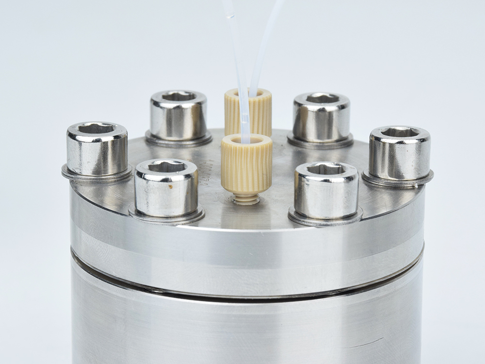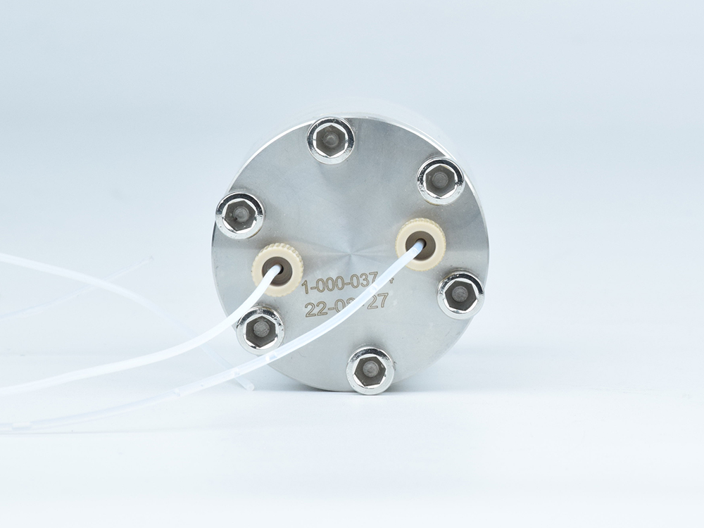 脈沖阻尼器 FS050輸出端軟管連接到阻尼器輸入,在輸出端接頭處連接一根輸出軟管至容器,即構(gòu)成一個(gè)典型應(yīng)用模式。適用流量范圍:50ul/min-50ml/min,10-32unf螺紋1/16管接頭;啟動(dòng)柱塞泵,水流通過(guò)阻尼器時(shí),這時(shí)由于流體壓力的作用,水流的湍流經(jīng)過(guò)整流,消除柱塞切換產(chǎn)生的脈動(dòng),平穩(wěn)輸出。